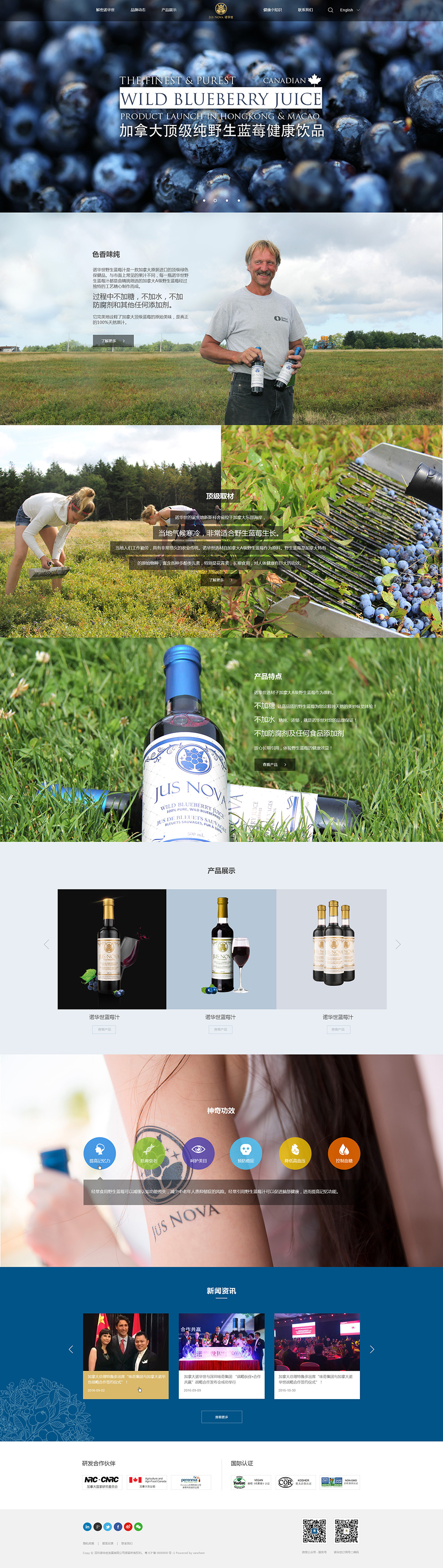 公司名:深圳市諾華世科技有限公司 外文名:Shenzhen JusNova Technology Co., Ltd 總部地址:加拿大新斯科舍省 JusNova諾華世是一總部設(shè)立在加拿大新斯科舍省的主營(yíng)野生藍(lán)莓系列產(chǎn)品的企業(yè),團(tuán)隊(duì)研發(fā)及生產(chǎn)中心設(shè)立于加拿大當(dāng)?shù)亍?JusNova產(chǎn)品目前已經(jīng)成功進(jìn)入加拿大、美國(guó)、英國(guó)、德國(guó)、日本、中國(guó)市場(chǎng),定位全球布局。 深圳市諾華世科技有限公司為在國(guó)內(nèi)設(shè)立的子公司。目前主營(yíng)野生藍(lán)莓汁、藍(lán)莓紅酒、酵素等系列產(chǎn)品。旨在打造野生藍(lán)莓一健康產(chǎn)業(yè),定位國(guó)際視野。