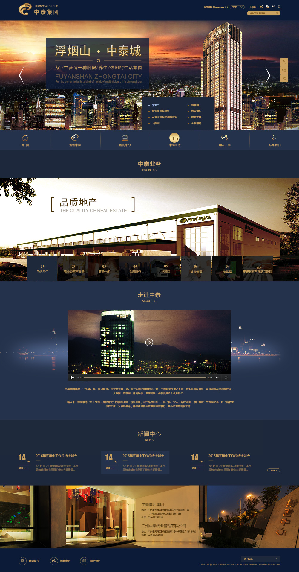 中泰集團(tuán)創(chuàng)立于1992年,是一以房地產(chǎn)開發(fā)為主導(dǎo),多產(chǎn)業(yè)并行的集團(tuán)化公司。業(yè)務(wù)布局房地產(chǎn)、物業(yè)經(jīng)營與服務(wù)、海外電信運(yùn)營及移動互聯(lián)網(wǎng)、大數(shù)據(jù)、物聯(lián)網(wǎng)、休閑娛樂、健康管理及金融服務(wù)等八大板塊。 中泰立足民生安居事業(yè)二十余載,積累了豐富的集投資規(guī)劃、開發(fā)建設(shè)、商業(yè)經(jīng)營和物業(yè)服務(wù)為一體的全過程運(yùn)作經(jīng)驗(yàn)。開發(fā)的產(chǎn)品覆蓋了高端洋房、甲級寫字樓、公寓、別墅、五星級酒店、商業(yè)綜合體、工業(yè)地產(chǎn)等多種業(yè)態(tài),并與香港長實(shí)集團(tuán)附屬公司ARA集團(tuán)達(dá)成戰(zhàn)略合作,為北京、上海等多個一線城市的地標(biāo)性建筑提供專業(yè)的物業(yè)經(jīng)營服務(wù)。 與時俱進(jìn),與同步發(fā)展。中泰集團(tuán)聯(lián)手廣東省廣業(yè)集團(tuán)、九次方大數(shù)據(jù)、東南亞電信集團(tuán)等國內(nèi)外知名企業(yè),運(yùn)用新時代信息科技及大數(shù)據(jù)技術(shù),為政府及個人提供多元化、深層次、全方位、個性化的優(yōu)質(zhì)新型服務(wù),為推動人們生活品質(zhì)不懈努力。