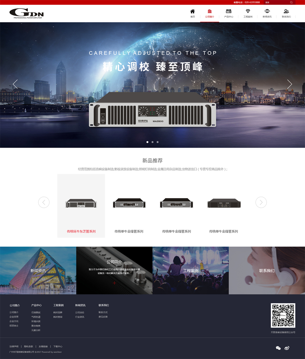 廣州市天歌音響設(shè)備有限公司(天工音響)成立于2003年,是一從事于專業(yè)功放(專業(yè)音箱及周邊設(shè)備)研發(fā),生產(chǎn)及銷售的龍頭企業(yè)。 公司擁有專業(yè)的技術(shù)團(tuán)隊(duì)和先進(jìn)的設(shè)備,在研發(fā)上特別注重功放的音質(zhì),每一款產(chǎn)品都經(jīng)過精心調(diào)校,使音色臻至頂峰。 作為一個(gè)敢于創(chuàng)新,不斷前行的行業(yè)領(lǐng)跑者,旗下?lián)碛袕V州市天歌音響設(shè)備有限公司,天工(國際)音響有限公司和天工音響工程有限公司等多子公司。 天歌(天工音響)經(jīng)過十余年發(fā)展,現(xiàn)有著的完善的管理系統(tǒng)。公司目前通過 3C 認(rèn)證及 ISO9001 質(zhì)量管理體系認(rèn)證,努力為客戶提供更優(yōu)質(zhì)的服務(wù)。 公司秉承以”追求質(zhì)量與服務(wù)為目標(biāo)”,始終把客戶的需求放在一位,為客戶創(chuàng)造有價(jià)值的產(chǎn)品和服務(wù). GDN品牌專業(yè)功率放大器為天工音響屬下品牌,專為高端用戶打造的音色,秉承了我司產(chǎn)品的優(yōu)良品質(zhì)和卓越音質(zhì)。