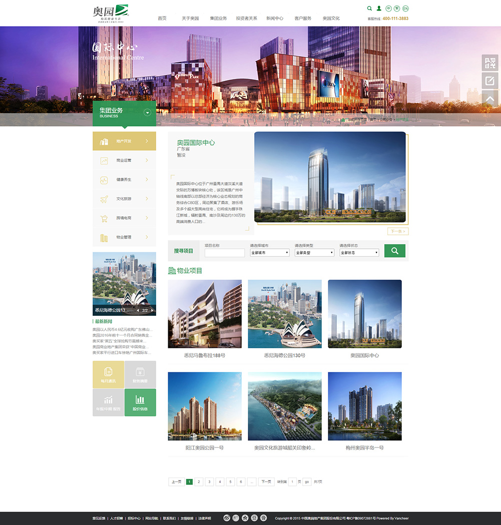 中國奧園地產(chǎn)集團作為復(fù)合地產(chǎn)、中國主題地產(chǎn)創(chuàng)新。開創(chuàng)性地將房地產(chǎn)開發(fā)與創(chuàng)造消費者生活方式密切結(jié)合,成功地實踐了運動復(fù)合、教育復(fù)合、商業(yè)綜合體復(fù)合、健康養(yǎng)生復(fù)合、文化旅游復(fù)合、跨境電商復(fù)合等多種復(fù)合地產(chǎn)開發(fā)模式。